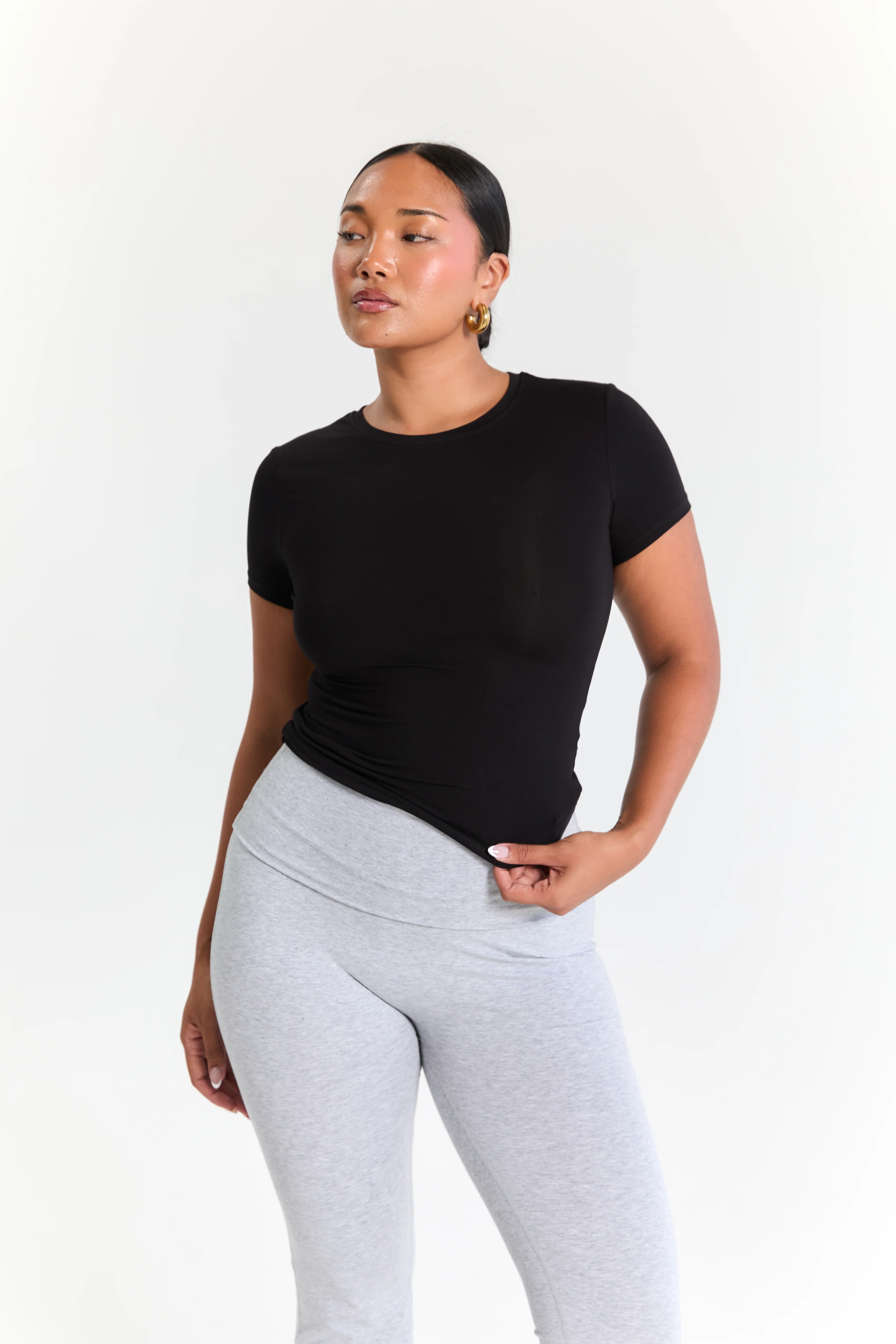 Our classic Baby Tee in Black is a wardrobe staple. This tee is made from a super-soft, stretchy modal cotton fabrication that flatters in all the right places. Our Baby Tee features a round neck and short sleeves with a subtle AFM logo detail on the back.