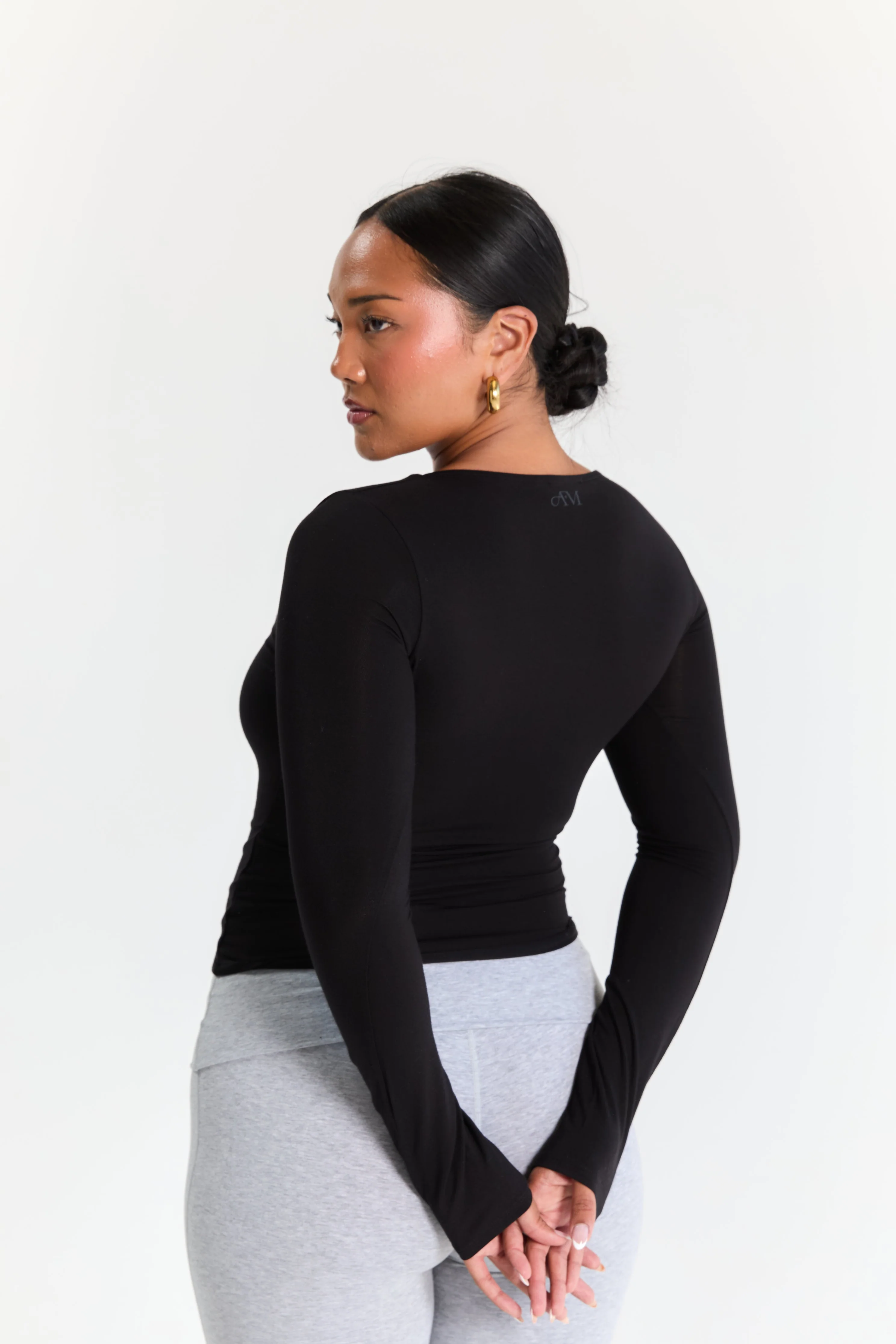 Our core long sleeve in Black has been crafted using a breathable, cotton fabrication with a double-lined front layer for a flattering fit. This style doesn't compromise on comfort - a trans-seasonal staple to add to your core collection.